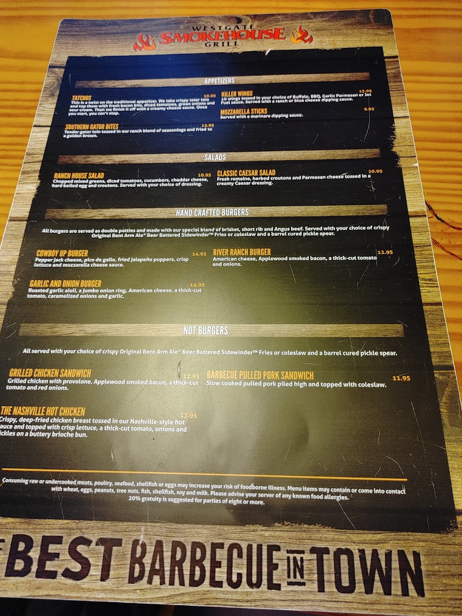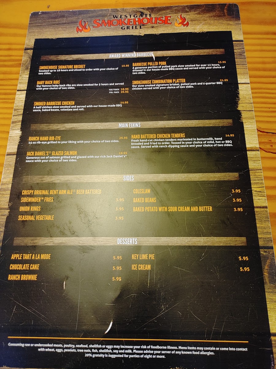 Smokehouse On The River Menu